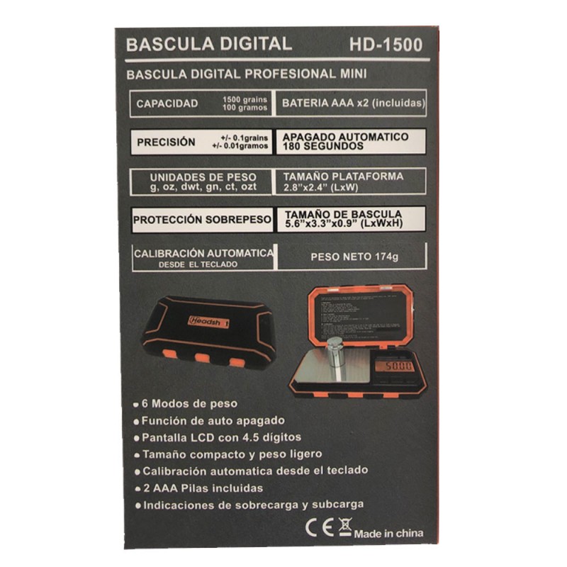 Báscula digital de precisión HEADSHOT HD1500