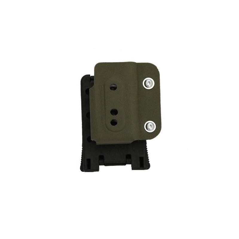 Portacargador ambisiestro, ligero fabricado en kydex de alta resistencia. La posición del portacargador en el cinturón se puede ajustar en infinitos ángulos según las necesidades, característica indispensable en IPSC.