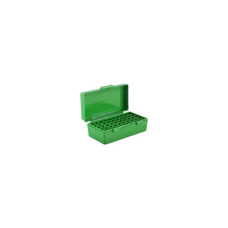 Caja para guardar y transportar cartuchos de rifle. Fabricada en plástico de larga duración, resistente a golpes. No se deforma, quiebra agrieta o expande. Tiene textura antideslizante, cierre duradero, capacidad de apilarse, bisagra mecánica y etiquetas de carga.