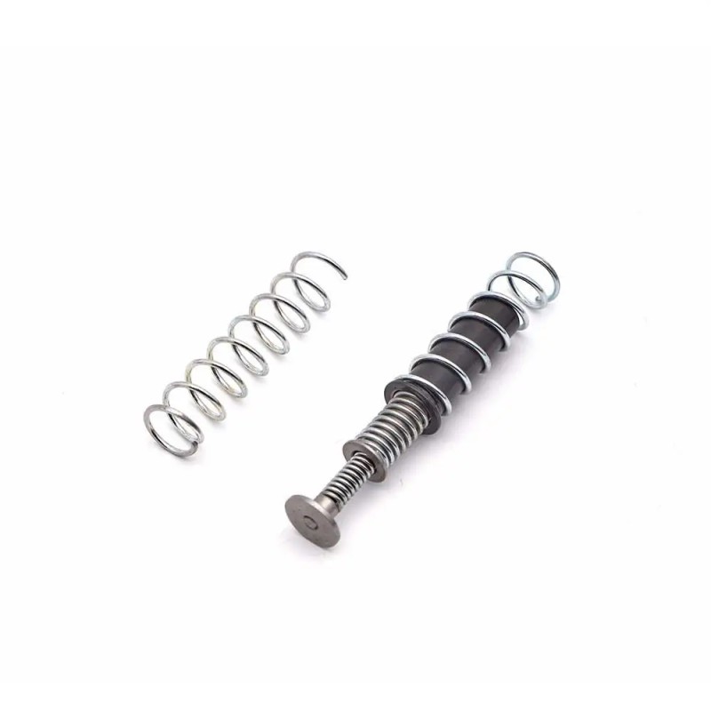 El sistema incluye tres resortes independientes y un tapón de resorte. Estos resortes externos varían en longitud y potencia, lo que permite al tirador ajustar con precisión las posiciones de apertura y cierre de la pistola según sus preferencias personales. El resorte más largo, con más espiras, es más resistente y soporta una mayor carga que los resortes más cortos.