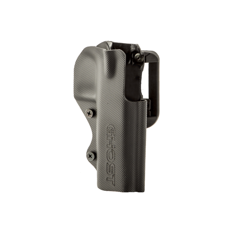Se incluyen anclajes de cinturón alto apto para cinturones de 3,5-5 cm y paddle. El anclaje tipo paddle permite el uso de la funda sin cinturón.