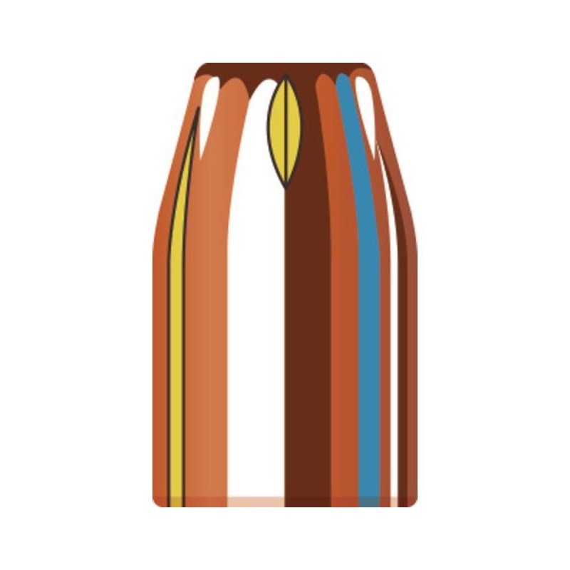 Tienen una expansión controlada incluso a bajas velocidades, generada por los cortes precisos que tiene en la punta de la bala, que la divide en secciones simétricas debilitando la camisa. La camisa de metal soldada protege la punta de la bala de tal manera que la cavidad actúa en el momento del impacto asegurando una correcta alimentación en armas semiautomáticas. El peso del núcleo está uniformemente repartida, lo que asegura también la expansión controlada así como la estabilidad en el vuelo. Con acanaladura de engarce que ayuda a conseguir un buen crimpado, están realizadas antes del preformado definitivo para eliminar distorsiones en el acabado final.